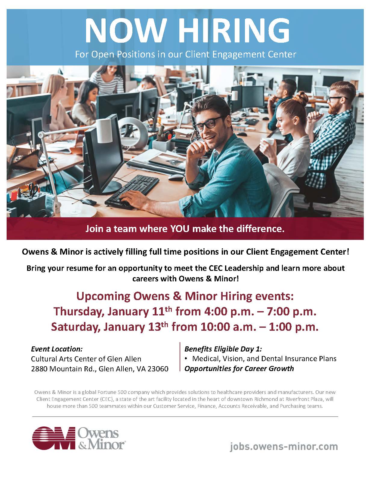 Owens Minor On Twitter Join Us Tomorrow For A Hiring Event From 4 7 00 P M At The Cultural Arts Center Of Glen Allen 2880 Mountain Road Glen Allen Va 23060 Https T Co Qhp6elo2gq